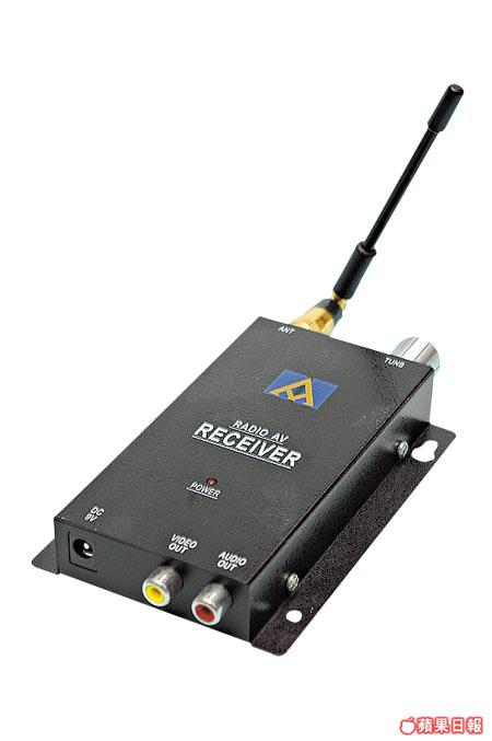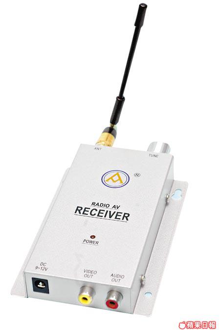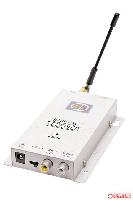 12V立體聲,2.4G頻道接收器,1,000呎有效接收範圍,配一個CMOS8mm鏡頭,可視範圍45度,連立體聲接收。這個接收器可配市面各種有線鏡頭,除用於閉路電視監控外,亦可作為廳房的AV影音無線接收器(單賣$310)附送火牛。