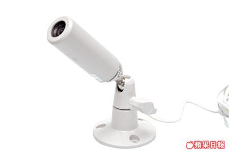 採用CMOS鏡頭,鏡頭可上下45度,左右120度移動。固定焦點,由一米至無限遠,有高中低三種解像,可掛牆、座枱、掛天花三用。有防水罩,合室內及戶外用。