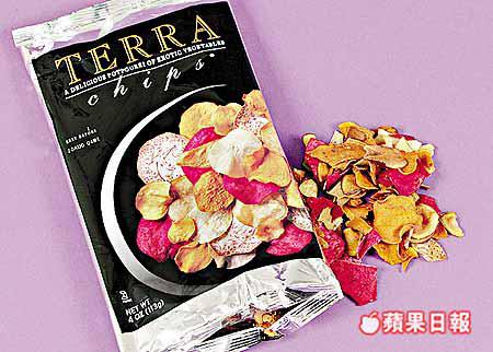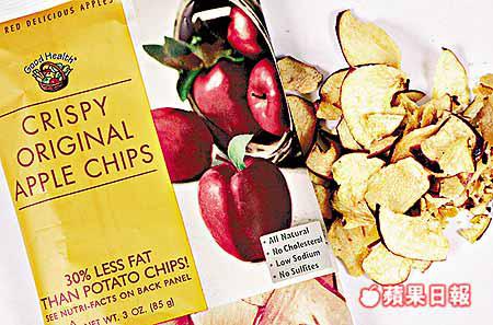 簡評:以紅蘋果切片製成,脂肪含量較一般薯片少百分之三十。這種標榜全天然、無膽固醇、低鹽及低鈉的零食,味道帶少許酸甜。