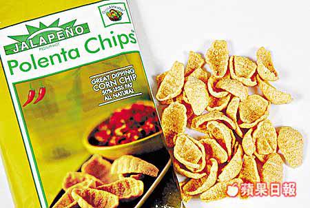簡評:以大麥及玉米製成的全天然健康零食,脂肪含量較一般薯片少一半,而味道加入少許辣椒粉,惹味非常。