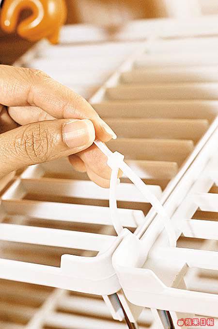 $10一個層架沒啥特別,但將幾個層架叠起就變成多層組合架,按需要自行決定叠高定叠矮,而且做法簡單,用尼龍紮線帶索緊便可。