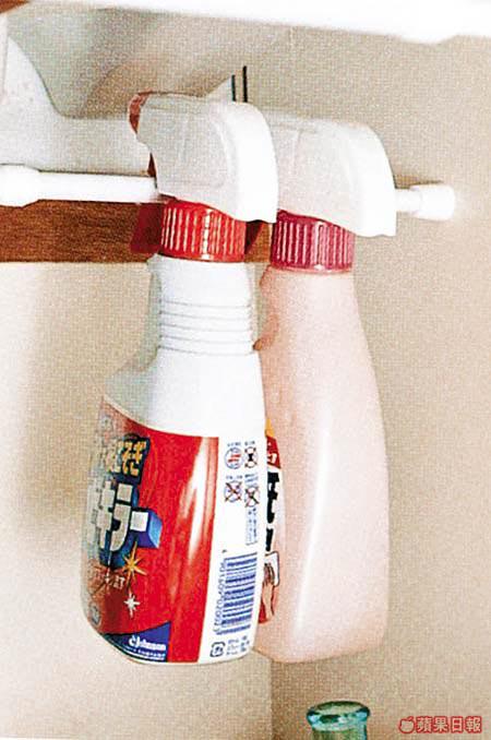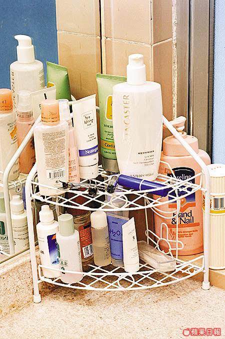 浴室內的雜物,以護膚品及清潔劑為主,要在有限的空間擺放大支細支護膚品及清潔劑,當然要識得偷位。