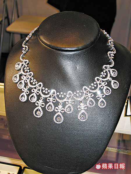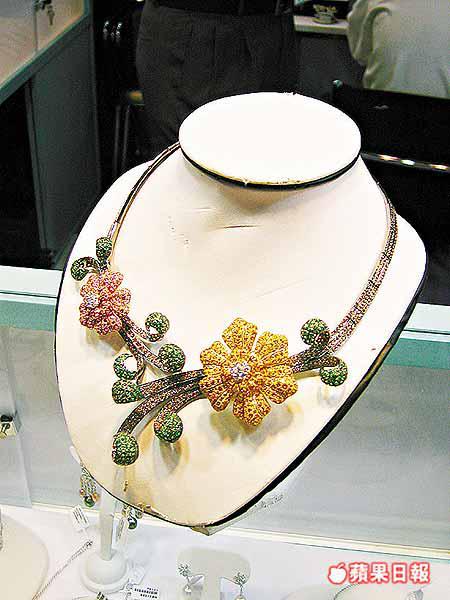 以有色寶石製造的花形頸鏈,豔光四射,但定價不低,批發價也要5萬港元。
