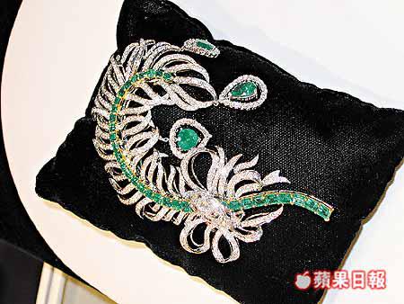 這款心口針是韋恆珠寶的精心傑作,同以玫瑰車工(rose-cut)製造,圖中的款式以哥倫比亞綠寶石加鑽石製成,售7.5萬港元。