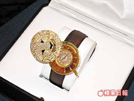 意大利公司Tinelli設計及生產的手表,創意不凡,配以獅頭表蓋的18K金手表,霸氣十足,零售價18萬港元;另一款手表配上鑽石(圖),倍添貴氣,零售價為26萬港元。