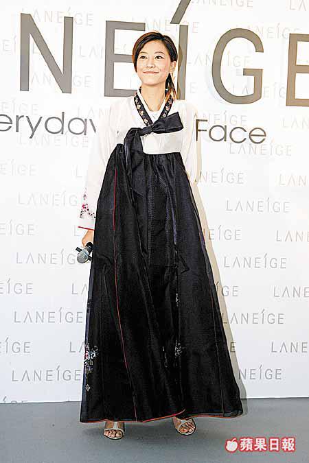 應采兒、關心妍及李嘉慧昨日往銅鑼灣,出席韓國護膚品品牌Laneige的兩周年慶祝活動,應采兒穿上私伙韓國民族服裝,成功突圍搶鏡。