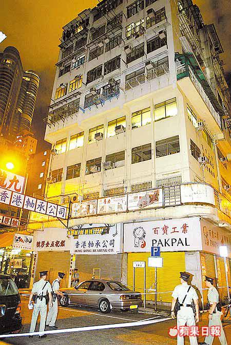 現場為廣東道九五二號一幢八層高樓宇,昨晚九時許,旺角一隊特別職務隊人員到五樓一個懷疑「白粉飯堂」調查時,屋內三十人其中兩男女乘亂攀窗逃出,擬沿外牆的花籠及水喉逃走,但女子攀出窗外不久疑慌張失足墮樓,先撞地面一輛私家車再反彈地上受重傷,送院不治。