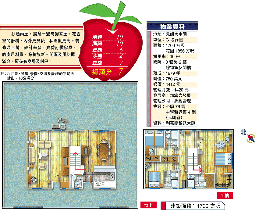 介紹的G段孖屋,由兩座各850方呎洋房打通,裝修不惜工本,開價750萬元,可以議價。