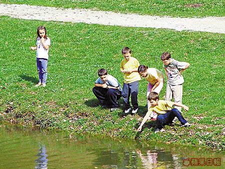 打從我們登上古堡開始,沿路一直遇上蹦蹦跳的貌似青蛙的不知名小動物,心裏一直覺得奇怪。來到古堡旁的人工湖,才發現牠們原來來自湖中,而且多不勝數,不停地在四處亂游,狀甚恐怖!在湖旁玩耍的小朋友,更因為不小心踏中這些湖蛙而尖叫連連!我生平最怕這些醜陋的小動物,除了急急腳離開,別無他選!