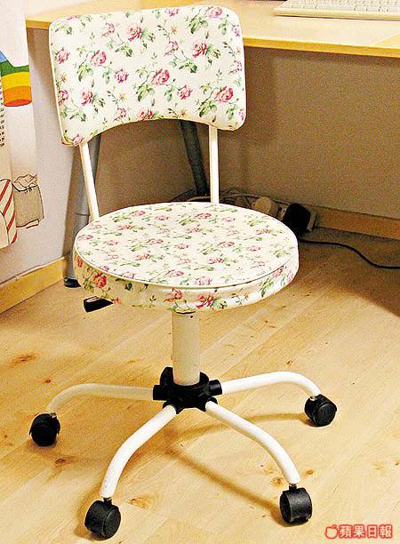 這張LOVE旋轉椅,不僅名字非常女性化,就連純棉椅套也採用嬌柔的白底碎花圖案,突破一般工作椅予人平實剛烈的感覺。可放置在工作室之餘,也可充當梳妝枱的椅子。