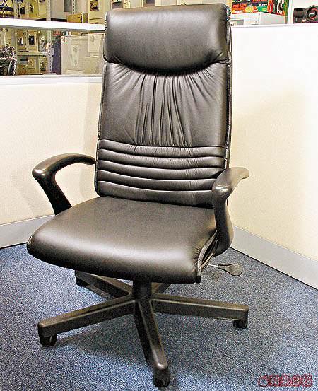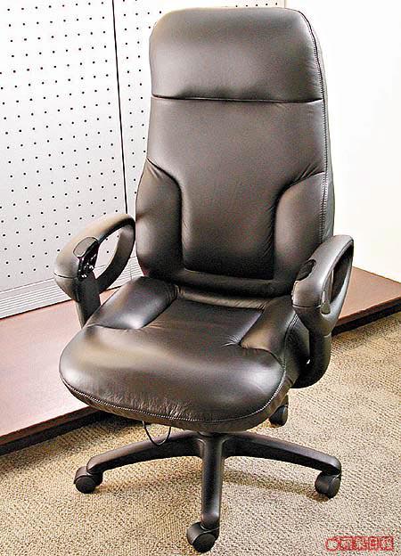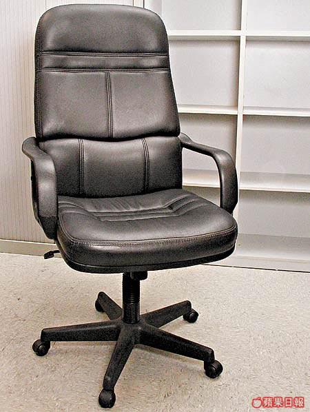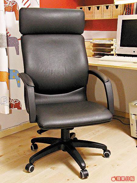 相信大部份人喜愛大班椅,都因為其體積闊落,可以讓整個人窩進去的感覺。這張外表平平無奇的黑色大班椅,其椅背和座位均用上脹卜卜的厚墊製造,彈性十足,坐起來的感覺就像梳化一樣舒適。