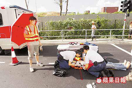 女子倒地頭部受傷流血,工人打傘為傷者遮擋陽光,傷者送院後情況穩定。