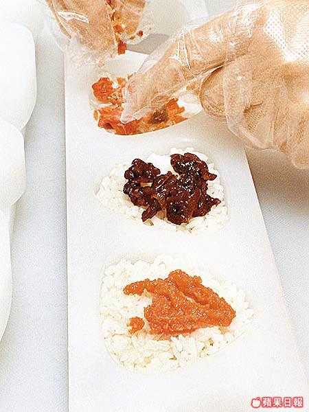 榮姐說香港人特愛紫菜,所以有紫菜圍邊的三角飯糰和全包形款式,也是特別好賣。紫菜圍邊的飯糰以素菜為主,撈入飯中用人手搓成形。因為用日本錦字米,加上店長在水量和浸水的秘方,米粒材料之間粘膠得如糖黐豆,米香軟糯材料健康。
