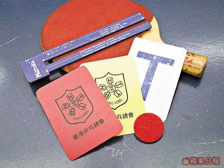 1.乒乓球裁判員的必備工具:紅牌、黃牌、暫停牌、擲毫子、量度尺。