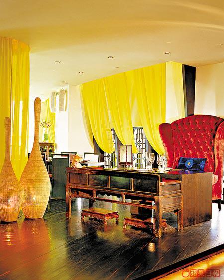 很難想像中餐館的裝潢能有多大突破,來去老是濃厚的中國味,努力讓人感覺古舊;高級一點的可能用上酸枝家具、古董擺設,令你食出中國味來。位於海濱藝術中心的「寒舍」,一看中式的門面就知道它是吃中餐的,不過進來後你一定會開始懷疑自己的判斷:火紅的酒吧、迷幻的燈光、奇形怪狀的椅子……十分破格。再看看它的餐牌,你便知道主人是個不簡單的藝術家。