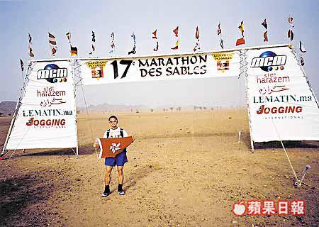 「後來,○○年到沙巴及○一年在新西蘭參加EcoChallenge,當中要爬山、划艇、騎馬,好有挑戰;○二年開始參加橫越沙漠跑,目的是想挑戰自己。因為我生得細粒,好多人都說我不可以到沙漠跑步,但我唔信,我只相信事前訓練好就一定得。每次跑完越野馬拉松都覺得同人生總有重重困難好相似,七至十日內歷盡順境、逆境。」