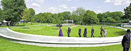 英國已故威爾斯王妃戴安娜逝世近七年,為紀念她而建、坐落在倫敦海德公園的噴泉周二揭幕。揭幕儀式由英女皇伊利沙伯二世主持,戴妃死後不相往來的溫莎家族和戴妃的史賓沙家族都有出席,在噴泉前再次悼念這位一代英國「人民王妃」。英女皇更念出親筆撰寫的開幕演詞,說戴妃「鋒芒畢露」、「觸動人的生命」。