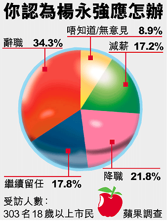 此外,不少市民昨致電商台節目《風波裡的茶杯》及港台節目《千禧年代》,要求楊永強為沙士事件辭職。其中鍾先生狠批說:「如果楊永強話負責係緊守崗位,咁就真係大鑊,教訓愈大愈唔肯起身!梁智鴻上年一個月內都冇開過會,好大問題!」
