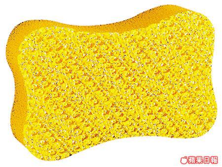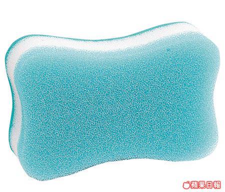 積聚在洗手盆表面的水迹和牙膏迹,並非甚麼頑強污迹,一般只需用清潔海綿擦拭即可。這塊表層套上鋼絲網的清潔海綿,磨損度不及鋼絲刷般強勁,清潔能力卻比普通海綿為高,用來對付這類輕度級污迹就最啱。