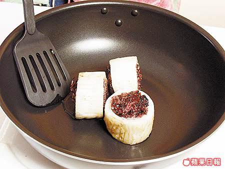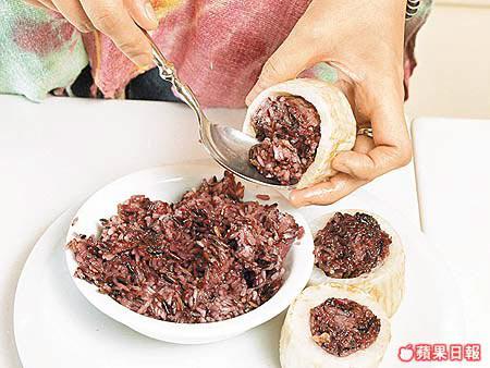 白蘿蔔屬涼性蔬菜,能消滯下氣,可平衡人體所需的營養,它更被認為是可以預防癌症的蔬菜。白蘿蔔更曾被李時珍在本草綱目中盛讚為「蔬中最有利益者也」,台灣民間更有「冬吃蘿蔔夏吃薑,不勞醫生開藥方」的俗諺流傳。從營養學的角度來看,白蘿蔔含有大量的維他命C和膳食纖維,具有開胃、幫助消化的功能。今天示範的三文魚釀黑米白玉,就用了營養豐富的三文魚和黑糯米來釀白蘿蔔,口味新鮮之餘,還健康到極。