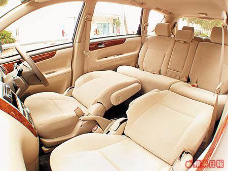 以子彈頭見稱的Previa,車廂寬闊舒適,就算坐上8個大人都不覺半點擠擁。這架精裝版雖然沒有豪華版的雙天窗和電索門,又少了兩個安全氣袋,但座位一樣變化多端,可攤平變大床,中排亦可調轉面對第三排座椅,形成一個車廂中的小型會議室。全車具備前後出風位,每位乘客都有適當的溫度調節。