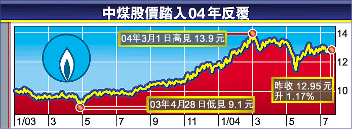 對於中煤的本業──煤氣銷售,陳永堅表示,由於剛過去的6月氣溫較高,影響了集團本港煤氣銷售,但整體而言,上半年煤氣銷售量仍有2%增長,今年未有考慮加價,亦沒有需要因油價上升而調整基本價格。