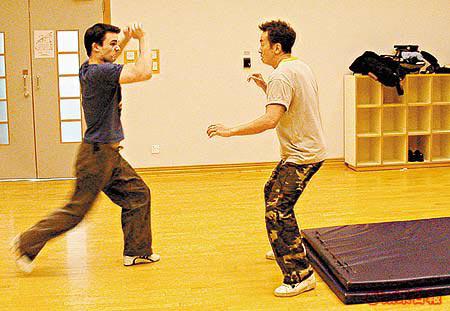 拍過《飛虎》、《大事件》和《新警察故事》的阿戚,經常在電影身兼數職,在課程中主要教揸槍,「比如警察揸槍就一定要穩陣,所以多數雙手揸!賊因為唔使向上頭寫報告,所以可以單手又得,扮型又得。但不論兵定賊,基本功就係上彈夾時要用手心按槍底,上膛會用眼瞄吓槍管係咪真係有子彈,握槍要用虎口位。重有,被警察用9mm彈射中應表現出郁一下都痛死嘅反應,反而中5.56mm高速子彈,因為子彈未必留喺身,反而要死得無咁辛苦!」