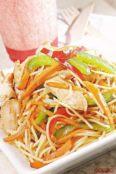 跟意大利的天使麵不同,麵條較粗,但加入雞塊、甘笋、青紅燈籠椒及烤雞汁,味道竟然似亞洲菜多一點。