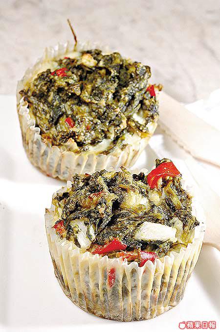 以菠菜、巴馬臣芝士、青紅燈籠椒、洋葱等做成,咬開有大量菠菜,中間滲入芝士,纖維量很高。