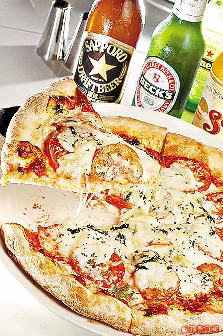只用番茄、羅勒葉及mozzarella芝士做餡的素食薄餅,芝士香氣撲鼻而來。星期一至四6:00pm後,柯打六支啤酒(每支$35)送一個薄餅。