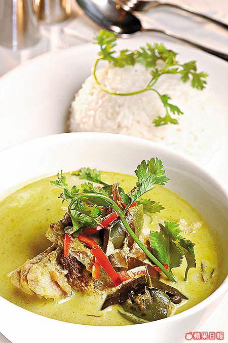 泰國的青咖喱加椰奶和雞湯,咖喱汁滲出椰子香味,辣度適中夠惹味。