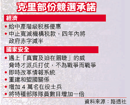 「我是約翰.克里。我是來報到的。」加上一個他六十年代行慣了的軍禮,美國民主黨總統候選人克里,周四在民主黨全國代表大會發表接受提名演說,第一句就用上新兵初來報到的口脗,凸顯他的英勇軍人形象。這次演說中,他力圖在國家安全和經濟政綱上,和競選連任的共和黨籍總統喬治布殊劃清界線──他只會在「真實和危險」的威脅下發動戰爭;他要給中產減稅,由富人多交稅。劃下界線,他向選民說,這是一場大是大非的選戰。