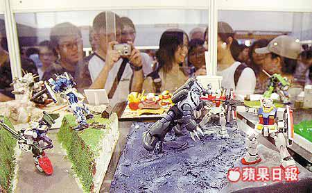 他又說,今日與大會及日本雜誌《電擊》合辦「高達模型王大賽」,參賽作品有數十件,都是高達迷花心思砌成的作品;部份參加者更自製配件改裝高達模型。玩具商萬代(BANDAI)昨更邀日本著名高達模型師川口來港,講解砌高達模型要訣,吸引大批高達迷圍觀。