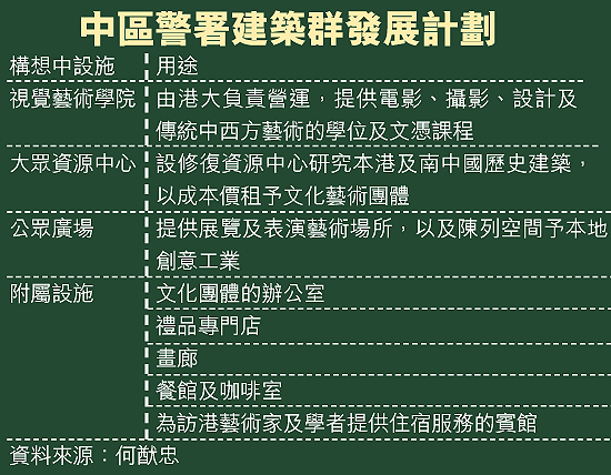 不過,旅遊事務署發言人指,政府仍傾向將中區警署建築群發展計劃作公開招標,對於何猷忠等的建議,未有進一步回應。