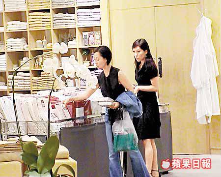昨日下午約六時,記者發現施念慈和母親在銅鑼灣G.O.D傢俬店步出,施念慈便服打扮,薄施脂粉,其母亦打扮隨意,其後二人便到時代廣場的連卡佛會合一名女性友人,再結伴到二樓的家居用品部購物,因正值連卡佛大減價,施念慈便專攻三、四折貨品,買了不少床上用品,逗留約半小時才離開。