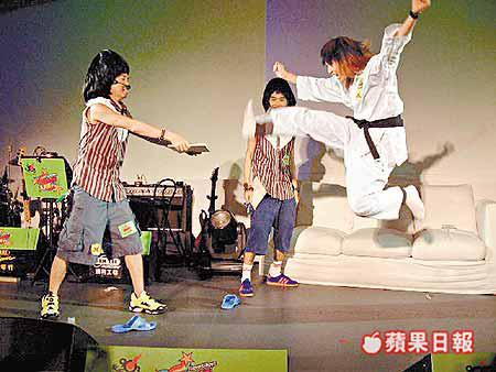 何韻詩前晚在九龍灣出席商台《萬人迷大作戰》演出,其中有一個環節讓她做柔道師傅實現夢想,何韻詩穿上柔道袍,即席凌空踢板,功架十足。