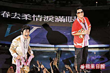 之前傳伏明霞有咗第二胎,阿松好快又再做老竇,噚晚八方見小伏步履輕盈,精神好好,身體好健康,佢孭住斜孭袋,身形望落又唔係咁似有咗BB。阿松同小伏喺紅館門口會咗七、八個朋友先至一齊入場,其中一個係亞視行政總裁陳永棋,因為成班記者沿途一路追住阿松同小伏影,其中有朋友取笑阿松話:「你今晚重紅過阿Sam!」