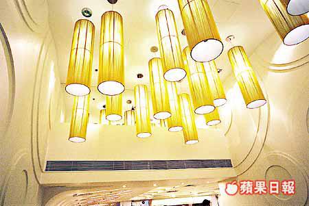 高逾十三呎的入口樓底,為設計師帶來無限的創意發揮空間,多盞三四呎高的鋼絲圓桶形金屬吊燈,配合牆身圓形浮雕圖案,富氣勢之餘,也夠潮氣。這類金屬吊燈,與一般布帳或純玻璃款式比較,更易於打理,而且也較高貴。
