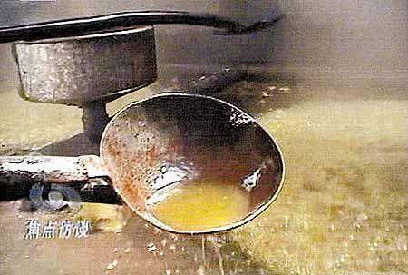 河北省鄉郊農村約二十戶個體工場,二十多年來每天每戶生產約七、八噸用腐爛發臭的雞內臟、雞脂肪煉製成的「食用油」。這些混雜了高溫燒溶的膠袋、雞糞及有毒雞淋巴腺的油,被賣到廣州、天津、唐山等地的飯店和食肆,用以炒菜、炸油餅、炸糕點。