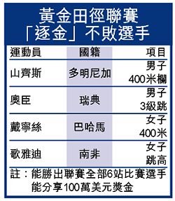 黃金聯賽仍餘兩站,目前仍有四位不敗選手(見附表)有望分享一百萬美元(約七百八十萬港元)大獎。