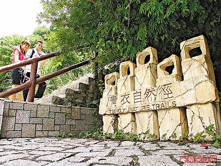 「青衣自然徑」全長4公里,環繞青衣島西北石環、金竹角諸山嶺而建,全程水泥路附路標及指示牌,兼有長達1,200呎的扶手欄杆,安全好走。