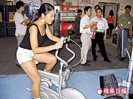 一邊玩腳踏車,一路玩電腦遊戲,可說是雙重享受,更重要是能為健身人士增添樂趣,整套設備單車連電腦,約售2萬港元。 (HumusMog)