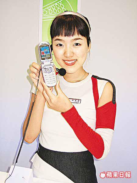 這位漂亮模特兒手中的LG-SD350CYON手機,內置300萬像素數碼鏡頭,更令人驚喜的是配備雙向揚聲器系統,能提供環迴立體聲響,約售4300港元。