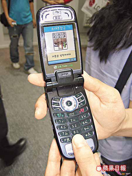 剛登場的LG-LP3800手機,可辨識指紋,確認使用者的身份,用戶透過手機進行各類網上商業活動也可得以安心,售價約為3500港元。