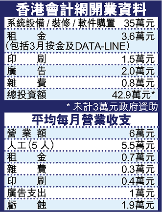 終於,Pro-acct網上會計系統去年7月面世,月費280元,設有繁、簡中文及英文3個版本,客戶可透過互聯網隨時隨地輸入資料或查帳,他們同時提供支援服務,包括上門培訓、系統更新、建立備份及分析等。至今客戶已累積至70個左右。另外兩位合夥人梁婉慧和吳國強分掌內外,前者主力發掘新客,後者着重拉攏舊客、提供售後支援服務。