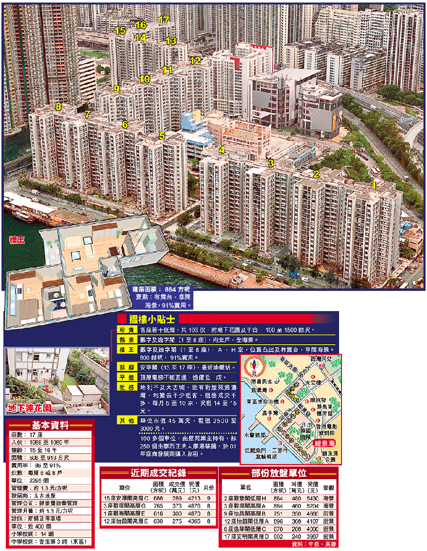二手屋苑經常受新盤衝擊,處於「捱打」狀態,但西灣河鯉景灣總可獨善其身,甚至反過來,間接得益,市況轉旺。歸根究柢乃因鯉景灣實而不華,間隔取勝。