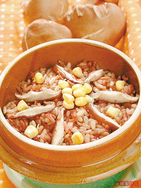 製法:紅米先浸水2小時,再與白米混合,加入肉絲和冬菇絲,放入飯煲同煮。