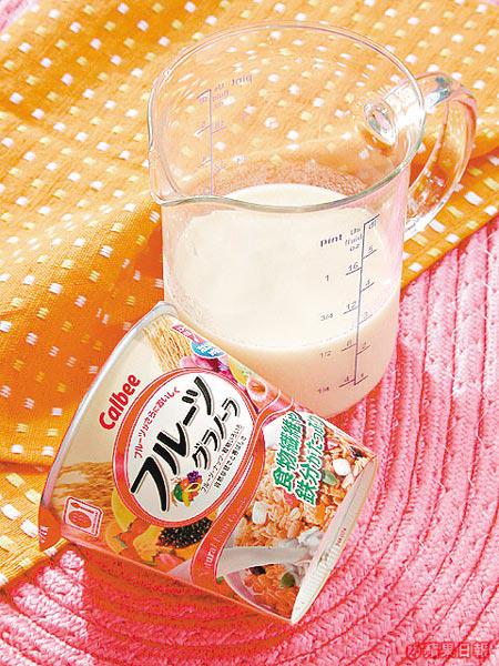 製法:香蕉切片後混入麥麩片與乾果中,倒入脫脂奶即可食用。