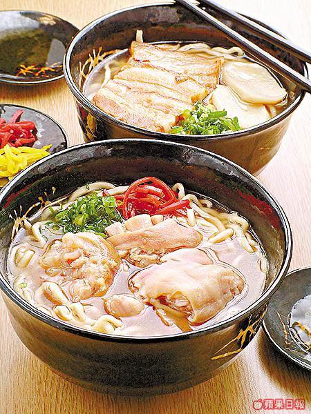 師傅說沖繩鄉下專做特色菜,大多是以豬為主材料的湯麵或定食。香港抽了部份老店菜式售賣,如豬軟骨湯麵、豬腳湯麵、歡會門湯麵(即豬腩湯麵)。