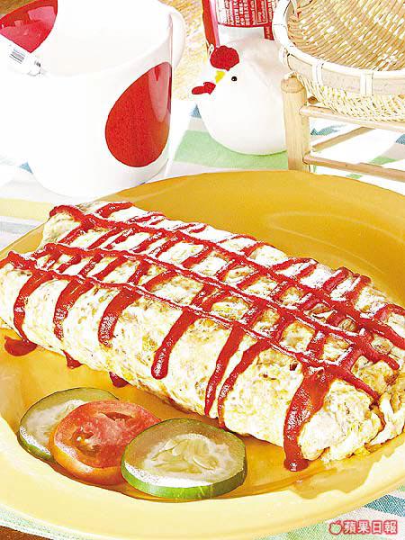 這道全店最受歡迎的雞菜式,先把煲過的日本咖喱飯再加雞肉、雜豆、洋葱和咖喱汁炒。同時又把3隻美國雞蛋打在直徑25.5cm圓模內煎3分鐘,最後蛋包飯,淋上茄汁即成。